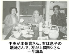 そのうちの一人が本畑實さん(明治四十年生まれ)で、平成十五年八月現在、九十六歳と高齢ながら、なお健在である。本畑さんの息子、本畑敏雄さんは、当時の話をよく聞かされたといい。「七福丸は金の船だった。バクヨウの仕事で金を稼ぎ、たくさん土地を買った。父が長生きできたのも、その時の蓄えがあったればこそである。本当に感謝している」と語っている。