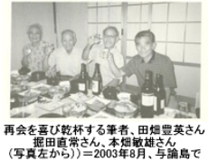 自分史の文中、今は絶えましたが、名護のヒートゥ狩りの話、名護の食文化の話など、興味深く読ませていただきました。また「我部祖河の偉人」の章では、我部祖河出身の上間幸助氏が沖縄自由民権運動で名をはせた謝花昇や移民の父、当山久三らと運動を共にしたという歴史的事実は、沖縄県民として忘れてはならぬものだと改めて認識させられました。