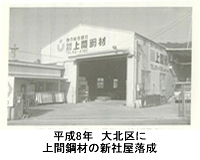 コンピューター導入から九年後の一九八八年(昭和六十三年)五月、城通りから北へ約二・五キロ離れた所にある名護市大北に敷地を求め、金物店を新築、大北店としてオープンした。一方、同年八月には同市伊佐川にトタン成形工場を建設し、トタンの成形、販売事業にも着手した。この八八年は店舗の新築とともに、新規分野の開拓に乗り出した年だった。